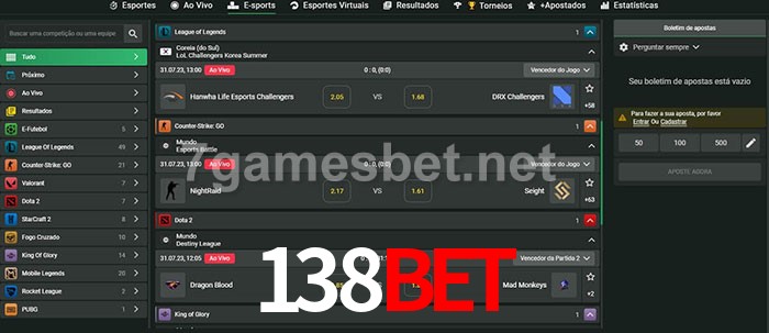 O 138bet oferece uma grande seleção de opções de apostas em e-sports com probabilidades competitivas